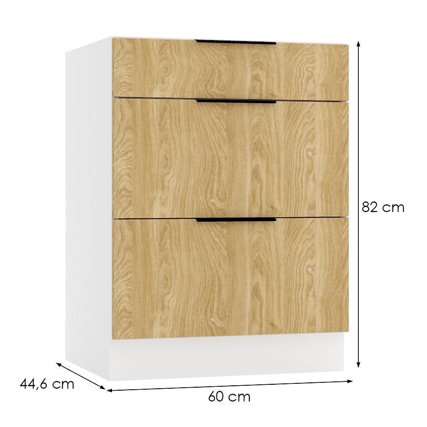 SONJA to nie tylko funkcjonalna szafka kuchenna, ale także wyrafinowany element wystroju wnętrza. Jej połączenie dębu, bieli oraz matowego wykończenia sprawia, że jest to doskonały wybór dla tych, którzy cenią sobie estetykę i naturalne piękno w kuchni.