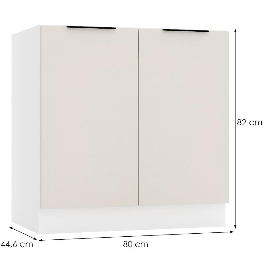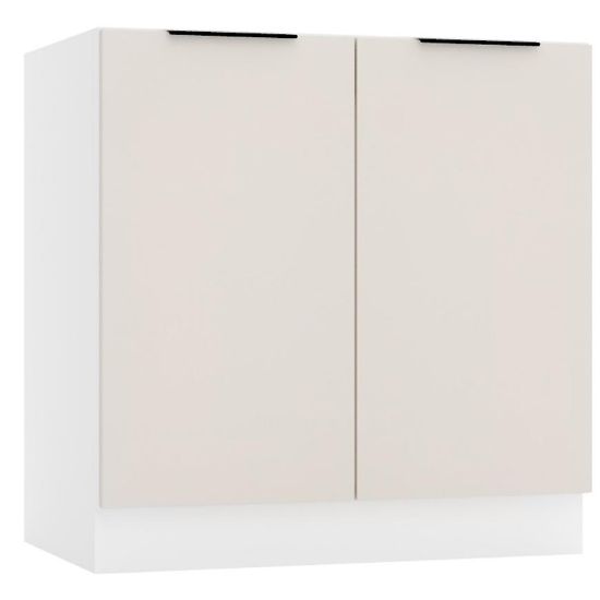 Korpus szafki SONJA został wykonany z białej matowej płyty wiórowej, co tworzy harmonijny kontrast z beżowymi frontami. Konstrukcja korpusu gwarantuje trwałość i stabilność mebla, co sprawia, że będziesz cieszyć się nim przez wiele lat.