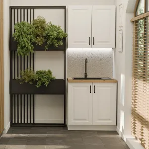 Do zestawu możesz dokupić nóżki, które nadadzą meblom lekkości i elegancji, oraz zlew, blat i sprzęty AGD, które pozwolą Ci kompleksowo wyposażyć kuchnię według Twoich potrzeb.