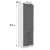 Fronty i korpusy mebli zostały pokryte matowym wykończeniem w dekorze dustgrey/biały, co nadaje całości elegancki i nowoczesny wygląd. To idealne rozwiązanie dla osób ceniących prostotę i minimalizm, ale również dla tych, którzy preferują klasyczne wzornictwo.