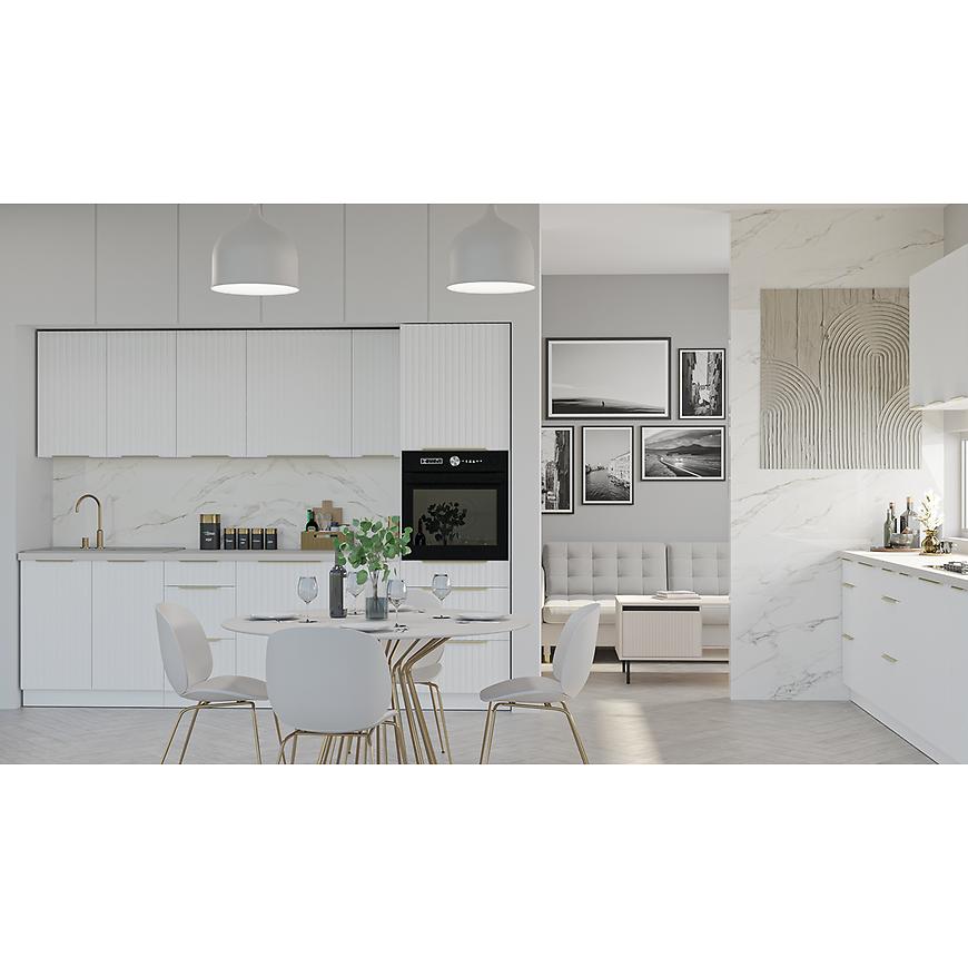 Kuchnia Tuluza wyróżnia się subtelną, a jednocześnie wyrazistą stylistyką. Jej jasna kolorystyka doskonale rozjaśnia wnętrze, nadając mu przytulny i przestronny charakter. Matowe wykończenie frontów dodaje elegancji i podkreśla wysoką jakość zastosowanych materiałów.