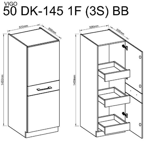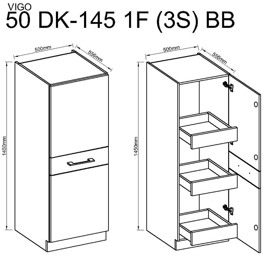Szafka kolumnowa Vigo oferuje dużą przestrzeń do przechowywania naczyń, artykułów kuchennych i innych niezbędnych rzeczy w kuchni. To doskonałe rozwiązanie, jeśli zależy Ci na organizacji i porządku.