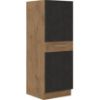 Szafka kolumnowa Vigo oferuje dużą przestrzeń do przechowywania naczyń, artykułów kuchennych i innych niezbędnych rzeczy w kuchni. To doskonałe rozwiązanie, jeśli zależy Ci na organizacji i porządku. Fronty szafki utrzymane są w eleganckim grafitowym kolorze, który nadaje meblowi nowoczesnego charakteru. Matowe wykończenie nadaje kolekcji subtelności. Korpus szafki został wykonany z trwałej płyty wiórowej laminowanej w ciemnym odcieniu dębu lancelot, co nadaje mu eleganckiego i klasycznego wyglądu. Cokół w kolorze korpusu dodaje spójności całej konstrukcji.