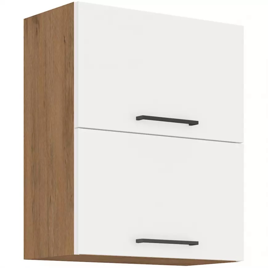 Szafka kuchenna typu górnego pochodząca z kolekcji VIGO doskonale sprawdzi się jako przestrzeń do organizacji elementów wyposażenia kuchennego. Białe fronty mebla zostały wykonane z płyty wiórowej laminowanej, a jej korpus o barwie dąb lancelot został wykonany z płyty laminowanej. Szafka wymaga samodzielnego montażu. Sprawdź pozostałe meble wchodzące w skład kolekcji VIGO.