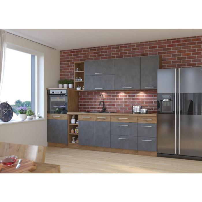 Meble kuchenne VIGO to uniwersalna propozycja dla kuchni zamkniętych oraz otwartych. Korpus wykonany z płyty laminowanej w kolorze Dąb Lancelot. Fronty w kuchni natomiast są wykonane z płyty MDF w kolorze grafit mat, dodatkowo zabezpieczone folią odporną na termo warunki panujące w kuchni (ABS). Szafki wyposażone są w system cichego domyku. Szuflady również posiadają system cichego domyku. Meble Vigo to rozwiązanie dla tych, którzy cenią sobie wygodę i indywidualny styl.