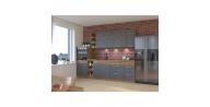 Meble kuchenne VIGO to uniwersalna propozycja dla kuchni zamkniętych oraz otwartych. Korpus wykonany z płyty laminowanej w kolorze Dąb Lancelot. Fronty w kuchni natomiast są wykonane z płyty MDF w kolorze grafit mat, dodatkowo zabezpieczone folią odporną na termo warunki panujące w kuchni (ABS). Szafki wyposażone są w system cichego domyku. Szuflady również posiadają system cichego domyku. Meble Vigo to rozwiązanie dla tych, którzy cenią sobie wygodę i indywidualny styl.
