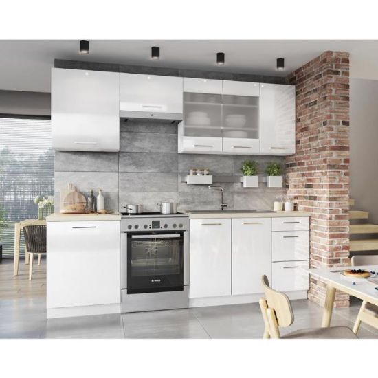 Kolekcja mebli do kuchni Vita to połączenie elegancji i funkcjonalności, które doskonale komponują się w nowoczesnych i klasycznych wnętrzach. Wykonane z wysokiej jakości płyty wiórowej laminowanej w białym dekorze, fronty mebli prezentują się wyjątkowo dzięki błyszczącemu wykończeniu, podczas gdy matowe korpusy zapewniają minimalistyczny charakter.