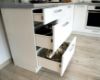 Szafki narożne, które eliminują marnowanie przestrzeni kuchennej. Pozwalają na wykorzystanie nawet trudno dostępnych kątów.