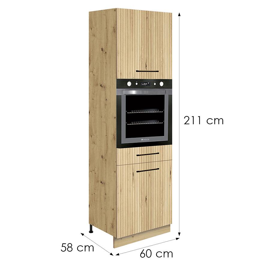 Szafka kuchenna Viva 20d Artisan to imponująca wysoka szafka dolna, która pozwala maksymalnie wykorzystać przestrzeń kuchenną w pionie. Jej wymiary 211 cm wysokości, 60 cm szerokości i 58 cm głębokości sprawiają, że jest idealnym rozwiązaniem do przechowywania większych naczyń, akcesoriów kuchennych czy zapasów żywności, zapewniając przy tym wygodny dostęp do wszystkich produktów.