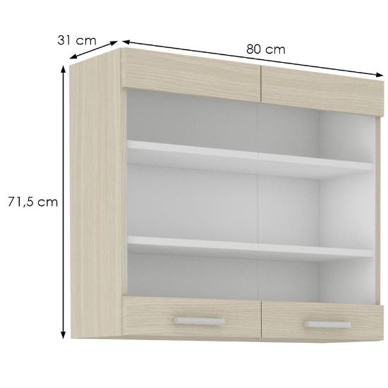 Kuchnia WIKTORIA to zestaw mebli, które nadadzą każdemu wnętrzu nowoczesności. Poziomy wzór oraz jasne usłojenie powiększy optycznie każdą kuchnię. W zestawie zastosowano proste lekkie bryły z ciepłą kolorystyką. Fronty wykonane z płyty laminowanej oklejonej listwą PCV odporną na uszkodzenia i nieprzyjazne warunki panujące w kuchni. Przeszklone fronty w szafce górnej pozwalają wyeksponować ciekawe rozwiązania dekoracyjne domowników.