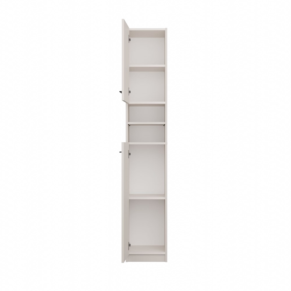 Model Franciszka został zaprojektowany z myślą o maksymalnym wykorzystaniu przestrzeni pionowej. Wysokość 180 cm i szerokość zaledwie 32 cm sprawiają, że słupek bez trudu mieści się nawet w wąskich wnękach czy przy pralce. Wewnątrz znajdują się aż 4 półki ukryte za frontami oraz 2 półki otwarte, które świetnie nadają się do przechowywania ręczników, kosmetyków, detergentów lub dekoracji. Dzięki takiej strukturze łatwo oddzielić przedmioty, które chcesz mieć pod ręką, od tych, które wolą pozostać poza zasięgiem wzroku. Przemyślany układ półek pozwala uniknąć chaosu – wszystko ma swoje miejsce, a dostęp do produktów staje się intuicyjny i wygodny.
