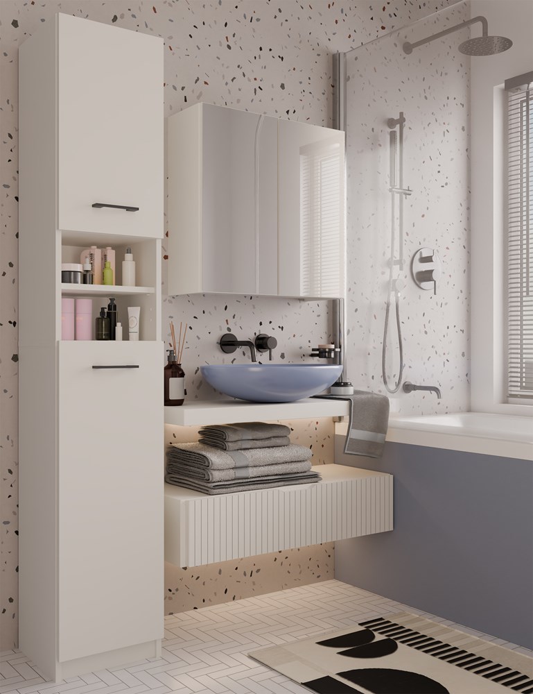 Szafka łazienkowa Franciszka Kaszmir – praktyczny słupek do małej i dużej łazienki