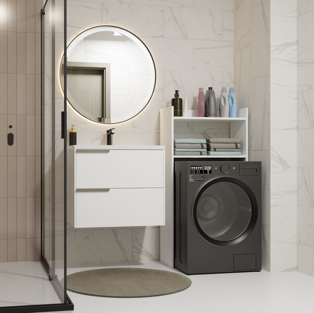 Szafka łazienkowa na pralkę Dalia to nowoczesny i funkcjonalny mebel, który pozwala w pełni wykorzystać przestrzeń w łazience. Zaprojektowana z myślą o praktycznym przechowywaniu, świetnie sprawdza się zarówno w małych kawalerkach, jak i większych mieszkaniach, zapewniając dodatkowe miejsce na detergenty, ręczniki czy kosmetyki. Wyposażona w dwie wygodne półki, umożliwia utrzymanie porządku i trzymanie niezbędnych akcesoriów zawsze pod ręką.