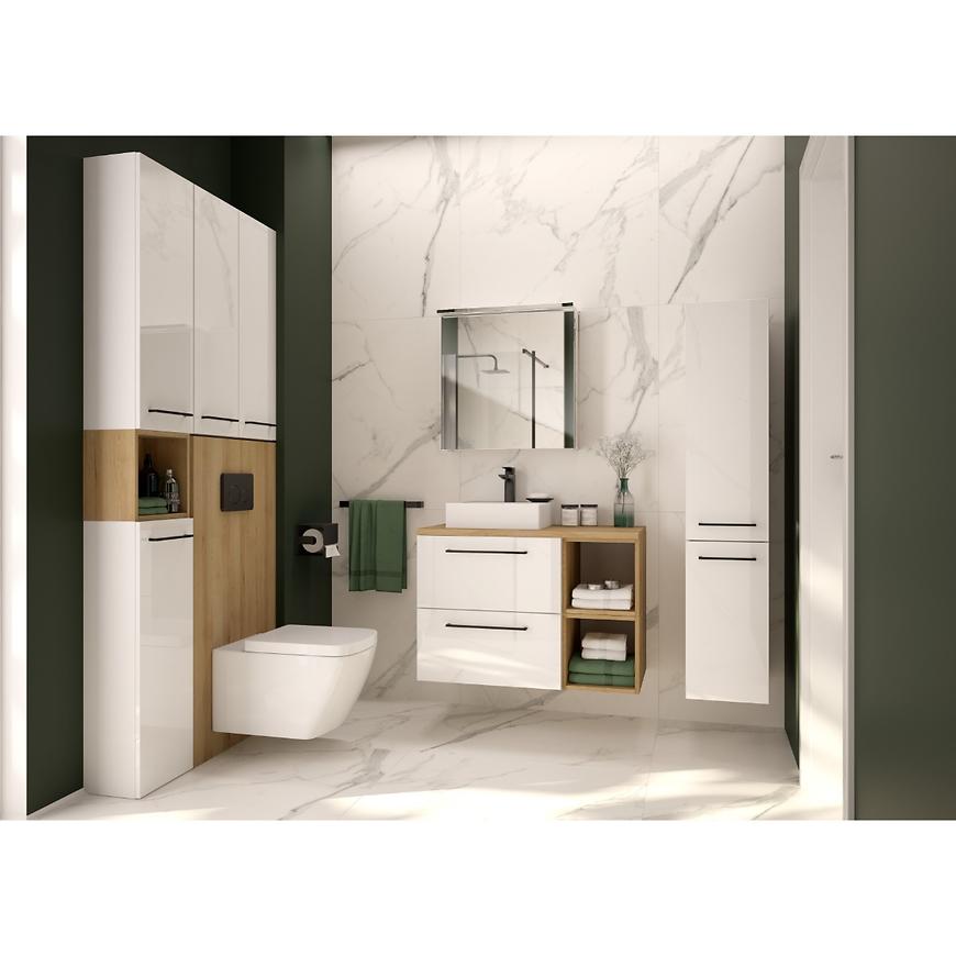 Zaprojektowana z myślą o Twojej wygodzie, została wykonana z trwałej płyty wiórowej i wykończona laminatem, co gwarantuje nie tylko wytrzymałość, ale także elegancki wygląd. Kolor korpusu buk truflowy nadaje wnętrzu nowoczesnego charakteru. Modułowa seria pozwala stworzyć idealną kompozycję w Twojej łazience, która nietylko będzie estetyczna, ale także funkcjonalna - szyta na miarę Twoich potrzeb.