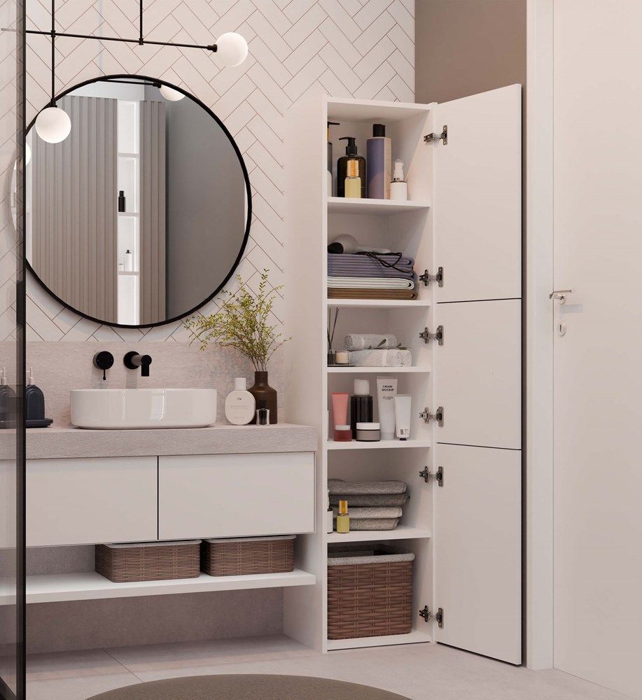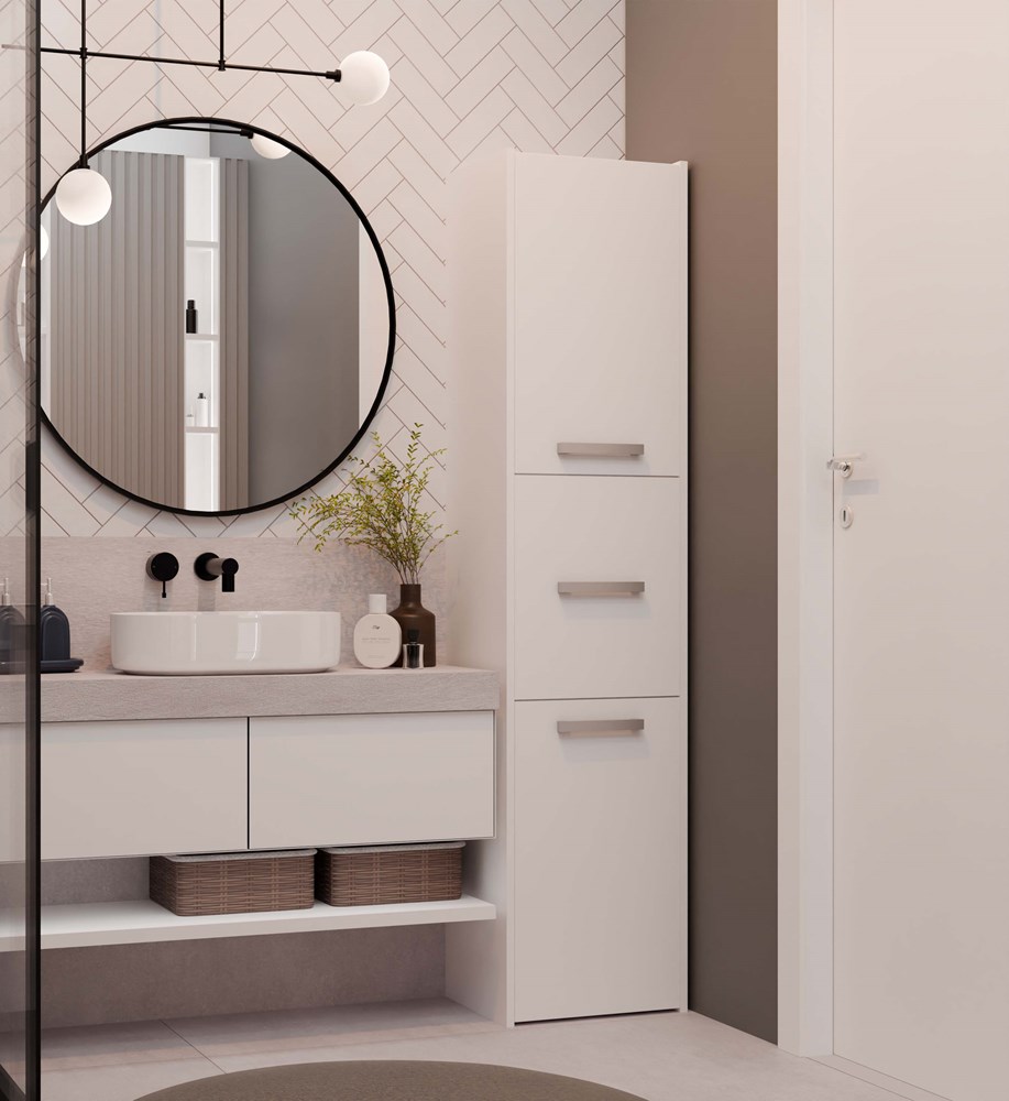 W każdej łazience znajdą się rzeczy, które potrzebują swojego miejsca. Dzięki praktycznym słupkom, skutecznie zapanujesz nad bałaganem, nie zajmując zbyt wiele przestrzeni. Uniwersalny wygląd sprosta oczekiwaniom wszystkich, którzy cenią połączenie prostoty i elegancji. Minimalistyczne uchwyty zapewniają wygodny dostęp do zawartości mebla. Staranna jakość wykonania. Możliwość wyboru strony otwierania drzwiczek – lewostronnie/prawostronnie - bezpośrednio przy montażu. Korpus i fronty wykonane z płyty wiórowej laminowanej, obrzeża wykończone tworzywem PCV charakteryzującym się dużą wytrzymałością mechaniczną i chemiczną. Uchwyty p[lastikowe w kolorze srebrnym. Powierzchnię mebla czyścić przy pomocy miękkiej szmatki. Unikać stosowania silnie działających środków chemicznych.