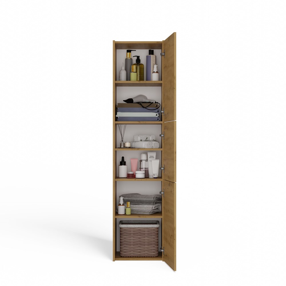 W każdej łazience znajdą się rzeczy, które potrzebują swojego miejsca. Dzięki praktycznym słupkom, skutecznie zapanujesz nad bałaganem, nie zajmując zbyt wiele przestrzeni. Uniwersalny wygląd sprosta oczekiwaniom wszystkich, którzy cenią połączenie prostoty i elegancji. Minimalistyczne uchwyty zapewniają wygodny dostęp do zawartości mebla. Staranna jakość wykonania. Możliwość wyboru strony otwierania drzwiczek – lewostronnie/prawostronnie - bezpośrednio przy montażu. Korpus i fronty wykonane z płyty wiórowej laminowanej, obrzeża wykończone tworzywem PCV charakteryzującym się dużą wytrzymałością mechaniczną i chemiczną. Uchwyty p[lastikowe w kolorze srebrnym. Powierzchnię mebla czyścić przy pomocy miękkiej szmatki. Unikać stosowania silnie działających środków chemicznych.