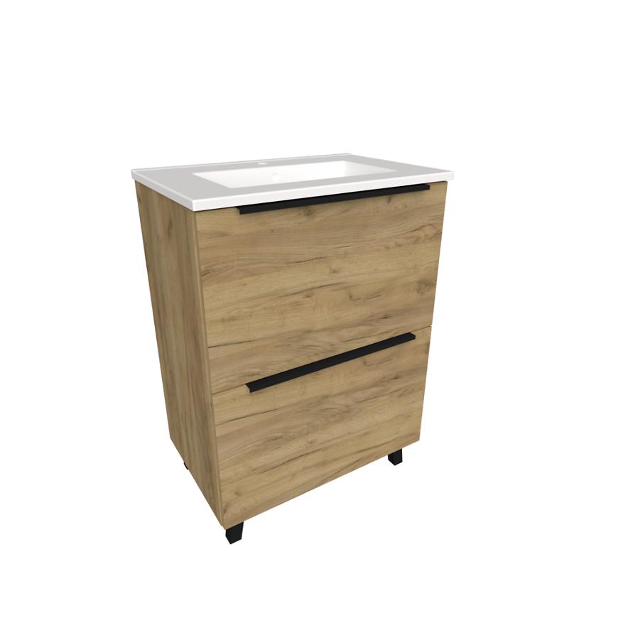 Szafka Lorus 60 dąb złoty to elegancka i praktyczna szafka łazienkowa o wymiarach 59,6x39,4x83 cm. Wykonana z płyty laminowanej w kolorze dąb złoty, łączy trwałość z naturalnym, ciepłym wyglądem drewna. Model 2-szufladowy, stojący, wyposażony w system samodomykania i uchwyty w zestawie, przeznaczony do samodzielnego montażu. Idealna do nowoczesnych i klasycznych aranżacji łazienki, zapewniając wygodne miejsce do przechowywania.