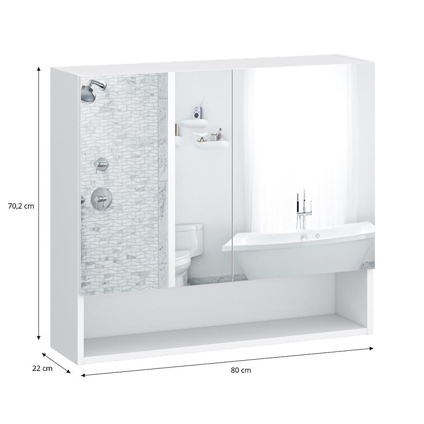 Szafka lustrzana Joy 80 biała z kolekcji JOY/BRUNO to stylowe i funkcjonalne rozwiązanie do łazienki. Jej wymiary to 70,2 × 80 × 22 cm, a waga wynosi 20,5 kg. Fronty wykonane zostały z lustra, natomiast korpus z płyty wiórowej wykończonej białym laminatem w macie, co nadaje całości nowoczesny i elegancki charakter.