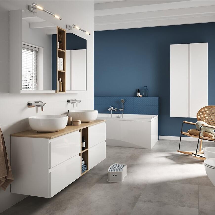 Szafka lustrzana Moduo 40 w kolorze białym to praktyczny i elegancki element wyposażenia łazienki. Jej kompaktowe wymiary – wysokość 80 cm, szerokość 40 cm i głębokość 14,1 cm – sprawiają, że doskonale sprawdzi się nawet w mniejszych wnętrzach. Front wykonany z lustra nadaje całości nowoczesnego charakteru, a korpus z płyty wiórowej lakierowanej zapewnia trwałość i estetykę. Szafka jest 1-drzwiowa, z systemem samodomykania dla większego komfortu użytkowania. Montaż podwieszany ułatwia utrzymanie czystości, a całość gotowa jest do użytku bez konieczności składania