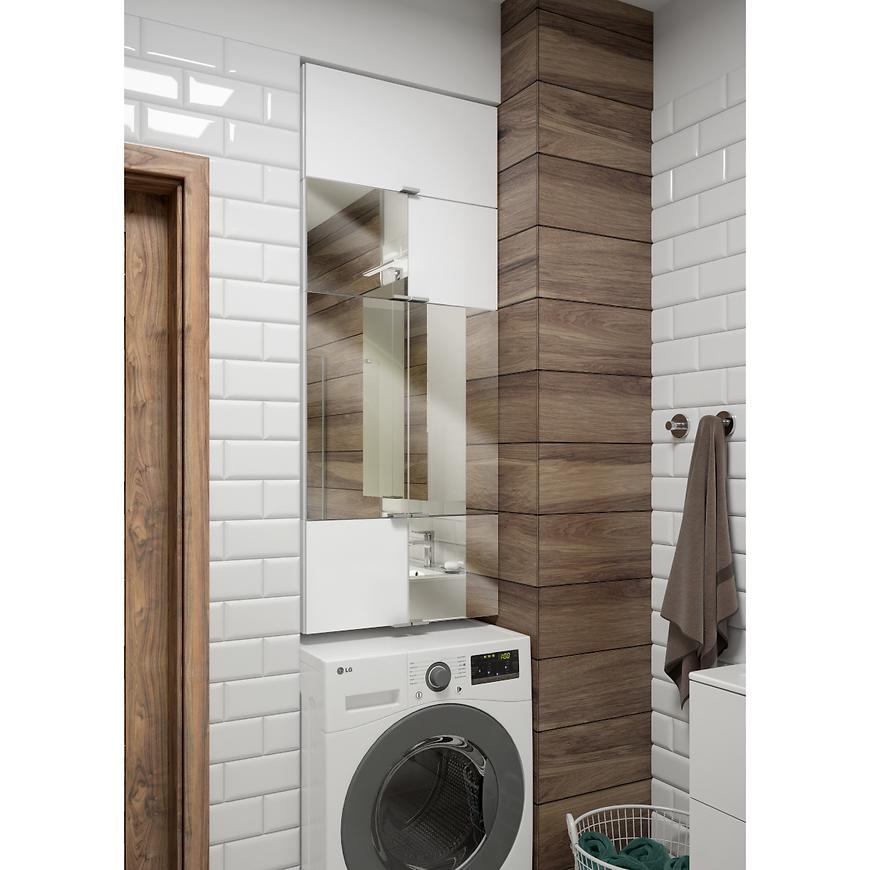 Szafka lustrzana z kolekcji Multi - połączenie praktyczności i elegancji. Korpus z solidnej płyty wiórowej, wykończony wytrzymałym laminatem w kolorze białym, gwarantuje trwałość i funkcjonalność. Front z efektownym wykończeniem w postaci lustra dodaje wnętrzu przestronności i blasku.