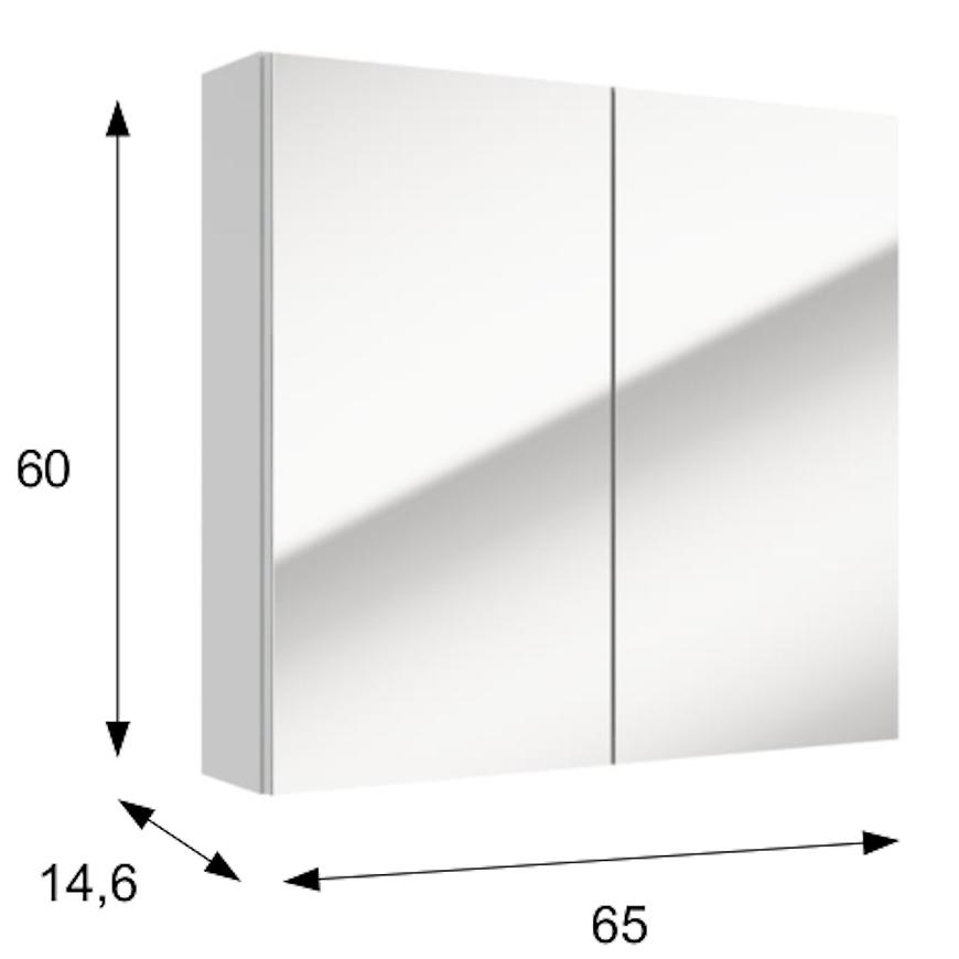 Szafka lustrzana Salsa E65 w kolorze biały to praktyczna szafka podwieszana do łazienki. Wymiary: wysokość 60 cm, szerokość 65 cm, głębokość 14,6 cm, waga 13,8 kg. Front wykonany z lustra, korpus z płyty wiórowej lakierowanej, co zapewnia trwałość i elegancki wygląd. Posiada 2-drzwiową wersję z systemem samodomykania. Szafka jest gotowa do samodzielnego montażu, oświetlenie nie jest w zestawie.