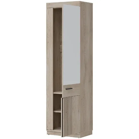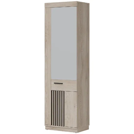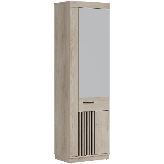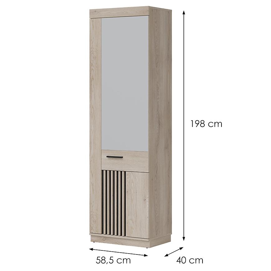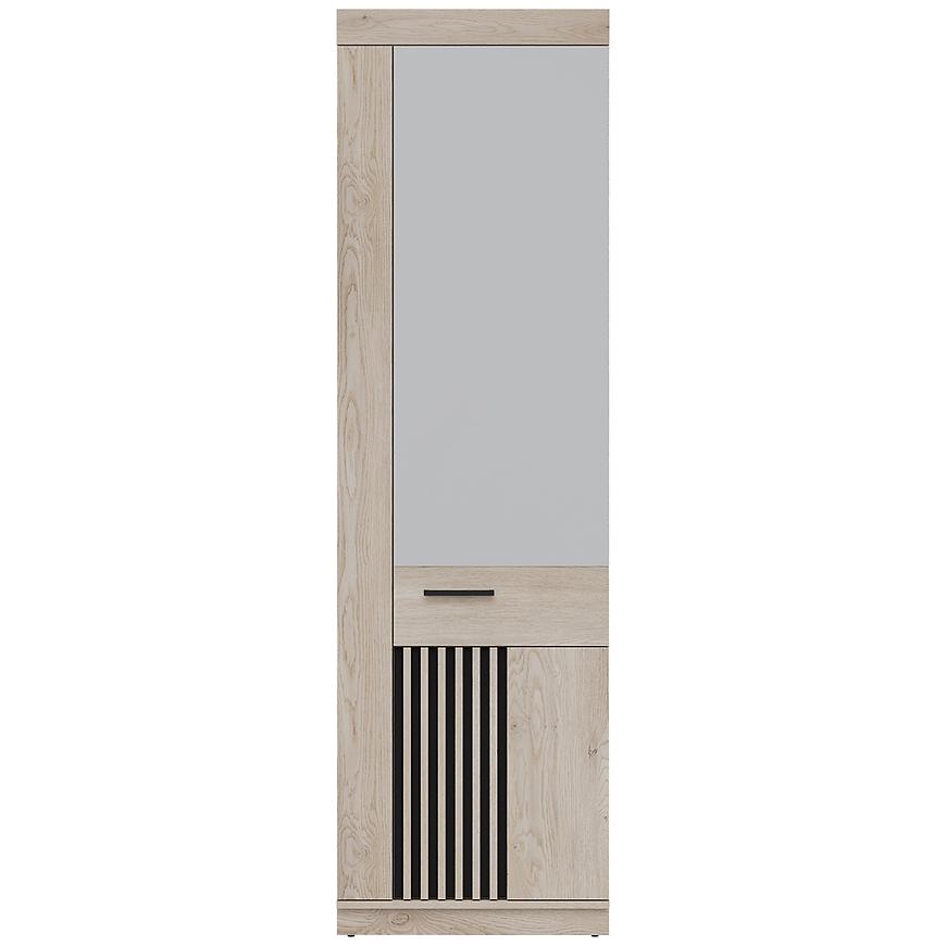 Szafa MATI to idealne rozwiązanie dla osób poszukujących stylowego i funkcjonalnego mebla do sypialni, garderoby lub przedpokoju. Jej nowoczesny design łączy klasyczne jednodrzwiowe skrzydło z praktycznym lustrem, które optycznie powiększa przestrzeń i dodaje wnętrzu elegancji. Połączenie kolorystyki dąb cremona cotta z głęboką czernią w matowym wykończeniu nadaje szafie wyjątkowy charakter, doskonale komponując się z nowoczesnymi aranżacjami.