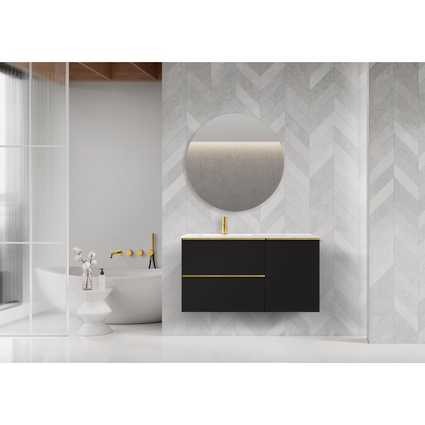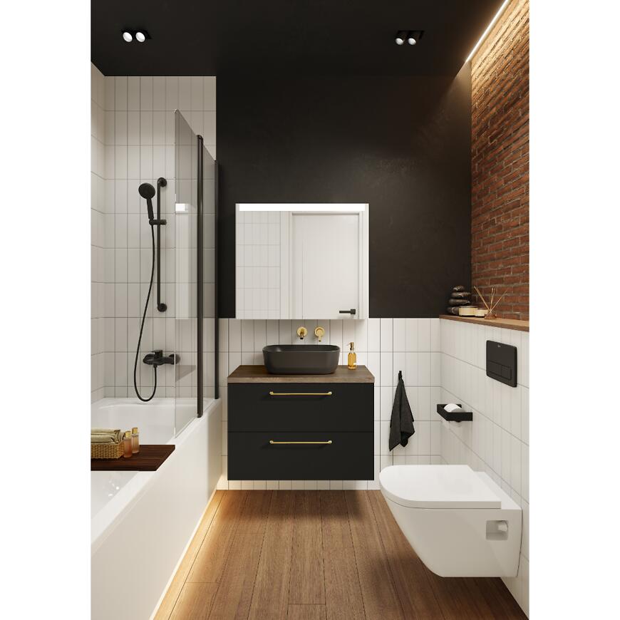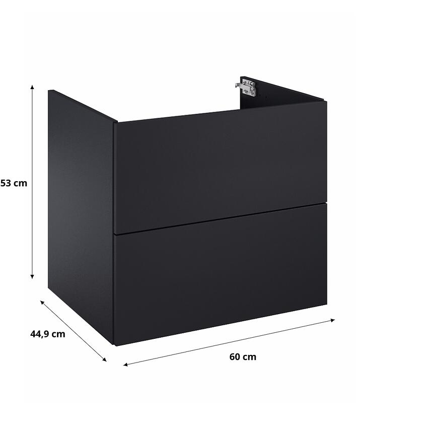Szafka łazienkowa MERKADO 60 2S Black Matt to elegancki i nowoczesny mebel, który doda łazience stylu. Wykonana z trwałej płyty wiórowej i wykończona czarnym matowym lakierem, oferuje 2 pojemne szuflady z systemem samodomykania dla wygody codziennego użytkowania. Montaż podwieszany nadaje lekkości i ułatwia utrzymanie czystości. Szafka idealnie komponuje się z umywalkami PLAZA 60 lub MERKADO 60, łącząc funkcjonalność z designerskim wyglądem.