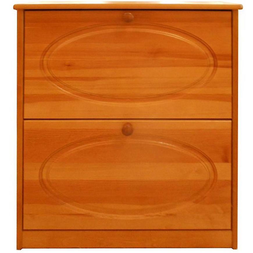 Dwie praktyczne klapy zapewniają wygodne przechowywanie obuwia, utrzymując porządek w przedpokoju i chroniąc buty przed kurzem. Dzięki połączeniu naturalnego drewna, matowego wykończenia oraz funkcjonalnej formy, szafka na buty 2KL dąb stanowi doskonały wybór dla każdego, kto szuka eleganckiego i trwałego mebla do swojego domu.