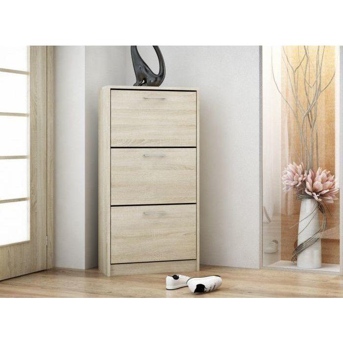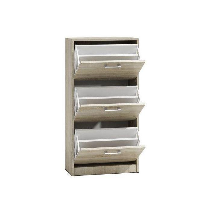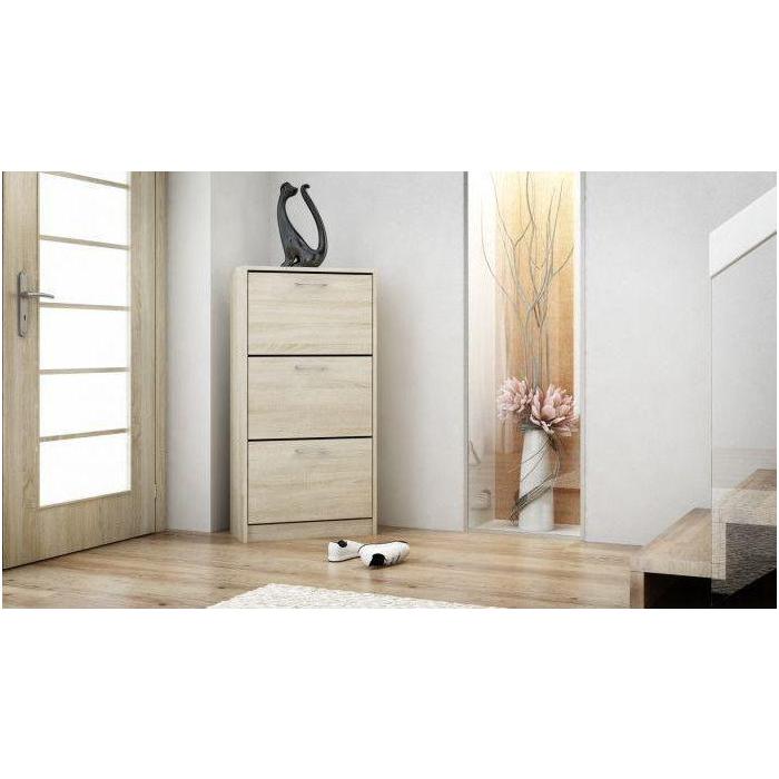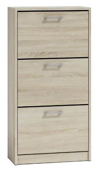 Szafka na buty Ada to klasyczna szafka na obuwie, która się sprawdzi w każdym przedpokoju. Szafka na buty Ada posiada funkcjonalne drzwiczki z uchwytami, za którymi znajduje się trzyrzędowy kosz na obuwie z tworzywa sztucznego. Wszystko to zamknięto w wymiarach 60x116x28 cm. Na uwagę zasługuje fakt, że szafka na buty Ada wykonana została z płyty laminowanej odpornej na ścieranie. Szafka na buty w kolorze dąb sonoma.