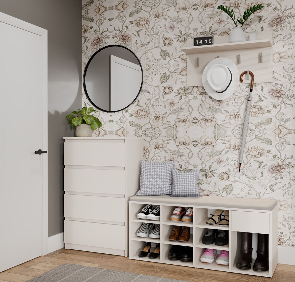 Korpus i półki wykonane z trwałej płyty wiórowej laminowanej 16 mm gwarantują wytrzymałość i estetyczny wygląd na lata. Wybierz szafkę na buty Allin – idealne połączenie designu, komfortu i praktyczności.