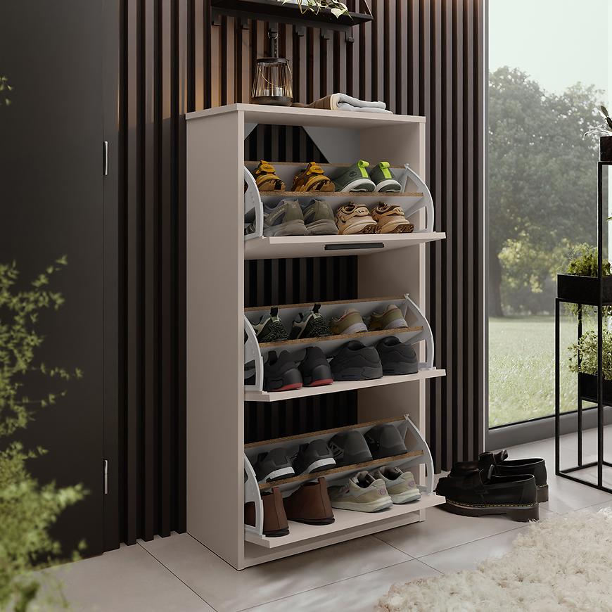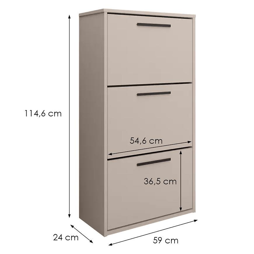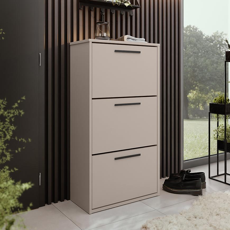 Szafka na buty Asper Stojąca Fr. Kaszmir/Kaszmir to stylowe i funkcjonalne rozwiązanie do przechowywania obuwia w nowoczesnym wnętrzu. Utrzymana w eleganckim, beżowym odcieniu kaszmiru, tworzy spójną i subtelną całość, która doskonale komponuje się z jasnymi i stonowanymi aranżacjami. Zarówno fronty, jak i korpus wykonane są z trwałej płyty wiórowej laminowanej o matowym wykończeniu, co zapewnia estetyczny wygląd i łatwość w utrzymaniu czystości.