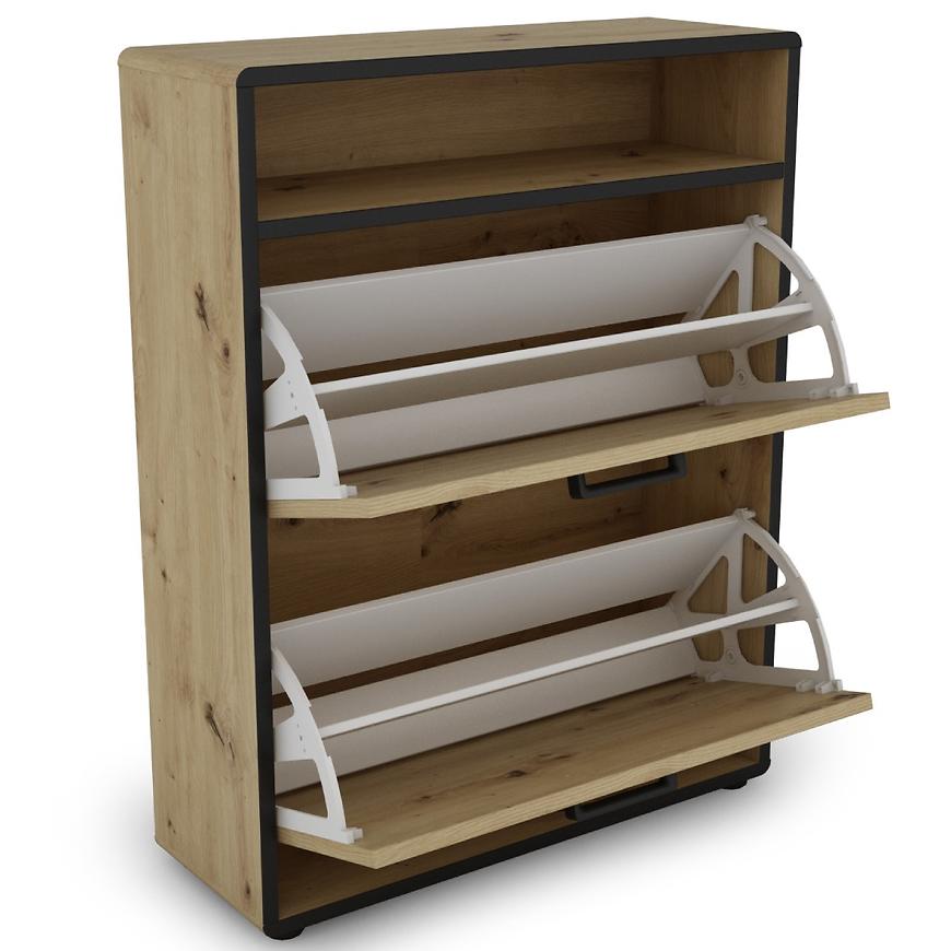 Kolor korpusu w odcieniu dąb artisan z czarnymi elementami tworzy harmonijny kontrast, który nadaje szafce wyjątkowego charakteru. Matowe wykończenie podkreśla jej nowoczesny styl i subtelność, co sprawia, że doskonale komponuje się z różnymi aranżacjami wnętrz.