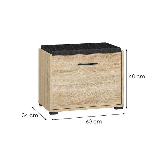 Szafka na buty Caro to funkcjonalne i stylowe rozwiązanie, idealne do organizacji przestrzeni w przedpokoju. Z kompaktowymi wymiarami 48x60x34 cm, doskonale sprawdzi się nawet w mniejszych pomieszczeniach, zapewniając praktyczne miejsce do przechowywania obuwia.