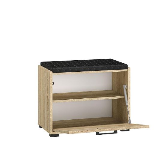 Szafka na buty Caro doskonale sprawdzi się w przedpokoju, holu czy garderobie, pomagając utrzymać porządek i uporządkować przestrzeń. Jej kompaktowe rozmiary pozwalają na elastyczne umieszczenie jej w różnych miejscach, dostosowując do indywidualnych potrzeb i preferencji aranżacyjnych. To praktyczne i estetyczne rozwiązanie dla tych, którzy cenią funkcjonalność i styl w swoim otoczeniu.