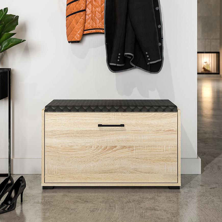 Kolor dąb sonoma nadaje szafce naturalnego, ciepłego charakteru, jednocześnie harmonizując z różnymi stylami aranżacyjnymi. Konstrukcja oparta na płycie wiórowej laminowanej gwarantuje solidność i trwałość mebla, co sprawia, że szafka na buty Caro będzie służyć przez wiele lat.