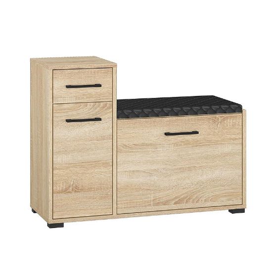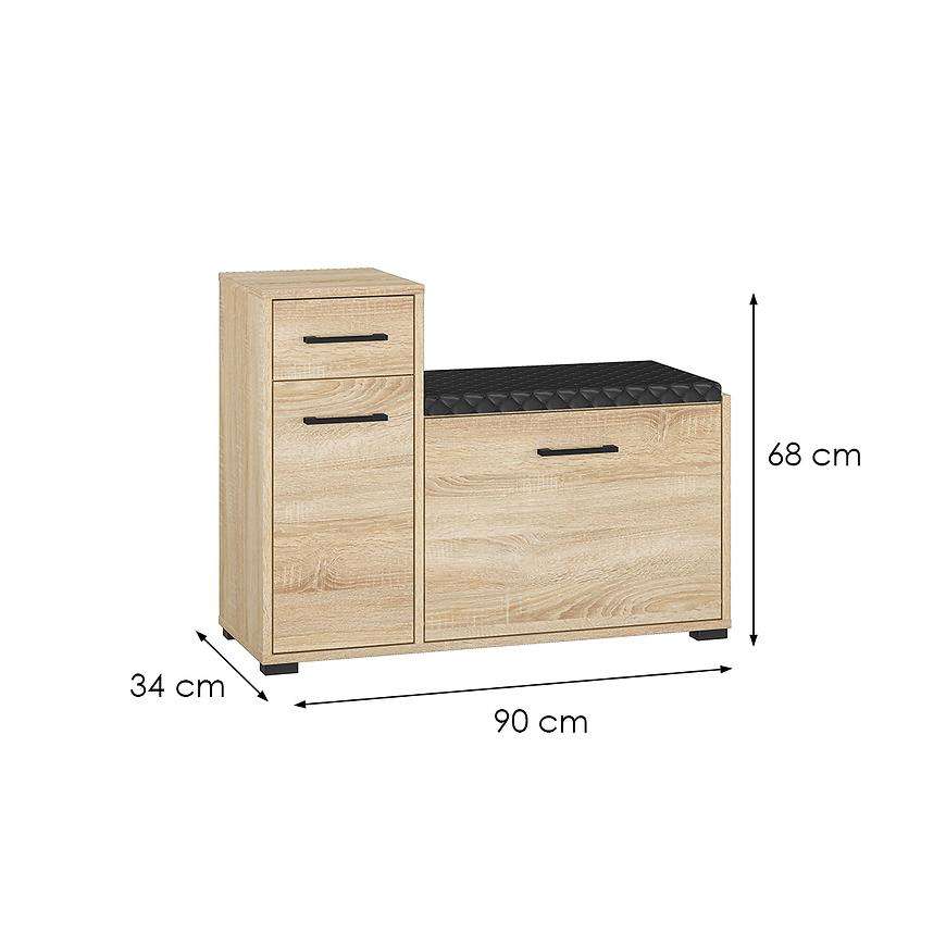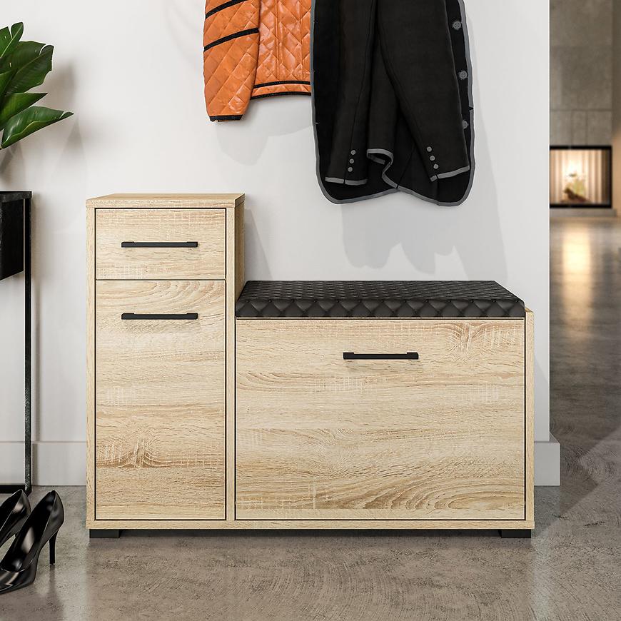 Kolor dąb sonoma nadaje szafce naturalnego, ciepłego charakteru, jednocześnie harmonizując z różnymi stylami aranżacyjnymi. Konstrukcja oparta na płycie wiórowej laminowanej gwarantuje solidność i trwałość mebla, co sprawia, że szafka na buty Caro będzie służyć przez wiele lat.