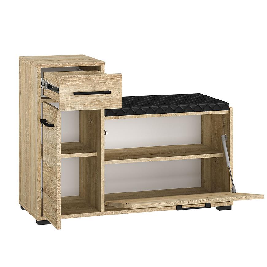 Szafka na buty Caro doskonale sprawdzi się w przedpokoju, holu czy garderobie, pomagając utrzymać porządek i uporządkować przestrzeń. Jej kompaktowe rozmiary pozwalają na elastyczne umieszczenie jej w różnych miejscach, dostosowując do indywidualnych potrzeb i preferencji aranżacyjnych. To praktyczne i estetyczne rozwiązanie dla tych, którzy cenią funkcjonalność i styl w swoim otoczeniu.