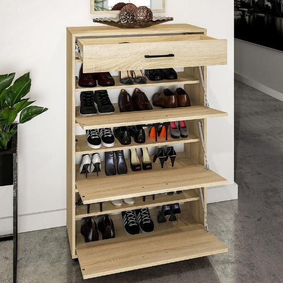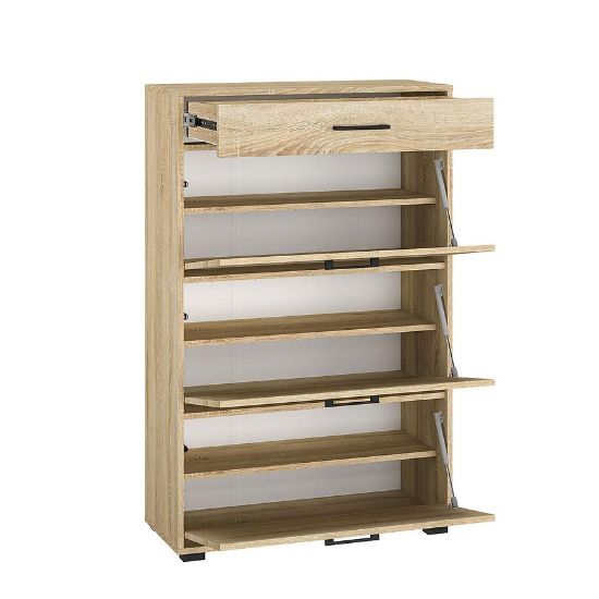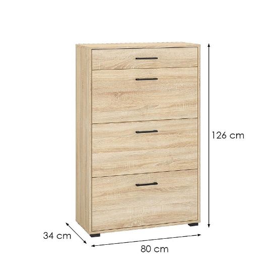 Szafka na buty Caro to funkcjonalne i stylowe rozwiązanie, idealne do organizacji przestrzeni w przedpokoju. Pojemna szafka o wymiarach 126x80x34 cm, doskonale sprawdzi się nawet w każdym pomieszczeniu, zapewniając praktyczne miejsce do przechowywania obuwia i akcesoriów.