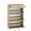 Szafka na buty Caro doskonale sprawdzi się w przedpokoju, holu czy garderobie, pomagając utrzymać porządek i uporządkować przestrzeń. Jej kompaktowe rozmiary pozwalają na elastyczne umieszczenie jej w różnych miejscach, dostosowując do indywidualnych potrzeb i preferencji aranżacyjnych. To praktyczne i estetyczne rozwiązanie dla tych, którzy cenią funkcjonalność i styl w swoim otoczeniu.