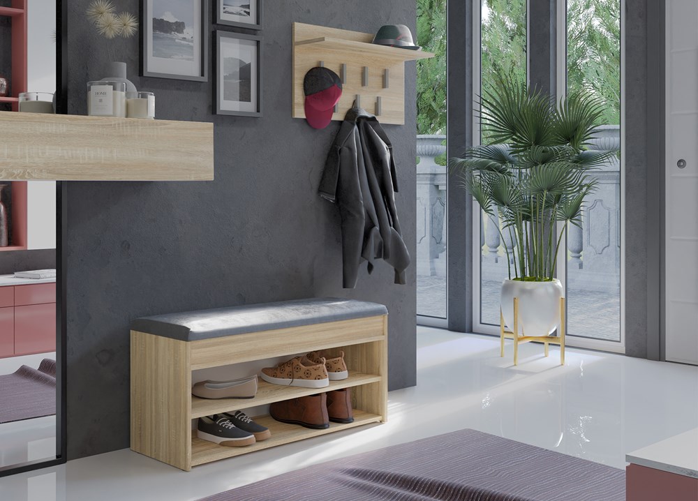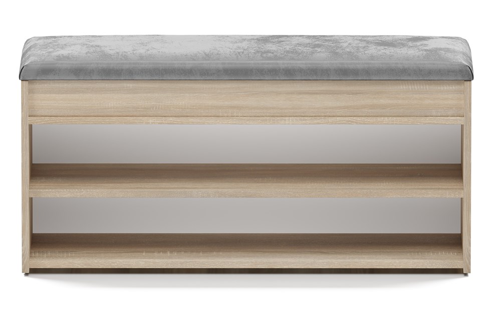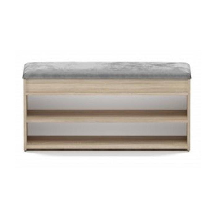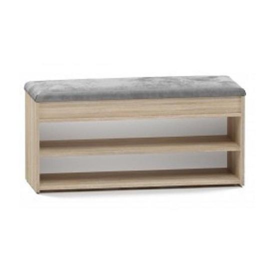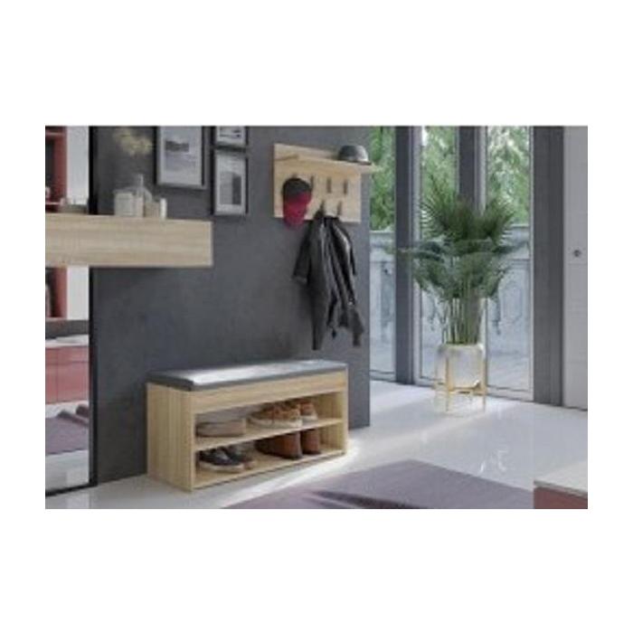 Szafka na buty Cella w kolorze dąb sonoma to bardzo praktyczny mebel do każdego przedpokoju. Szafka na buty składa się ze schowka o wymiarach 30x96x8 cm i otwieranym tapicerowanym siedziskiem. Materiał wykonania to płyta laminowana, a obrzeża – wykończone tworzywem ABS. Mebel do samodzielnego montażu.