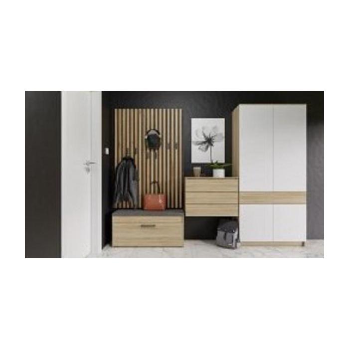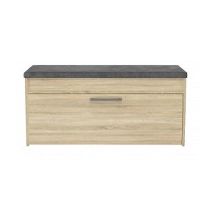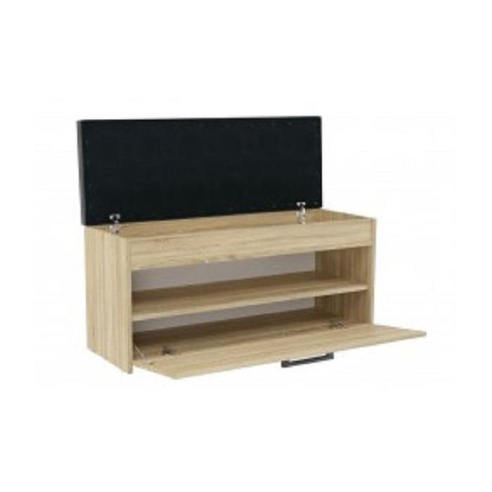 Szafka na buty Cella w kolorze dąb sonoma to bardzo praktyczny mebel do każdego przedpokoju. Szafka na buty składa się ze schowka o wymiarach 30x96x8 cm i tapicerowanym siedziskiem. Materiał wykonania to płyta laminowana, a obrzeża – wykończone tworzywem ABS. Mebel do samodzielnego montażu.