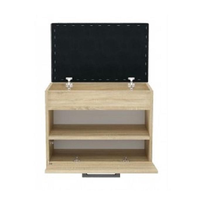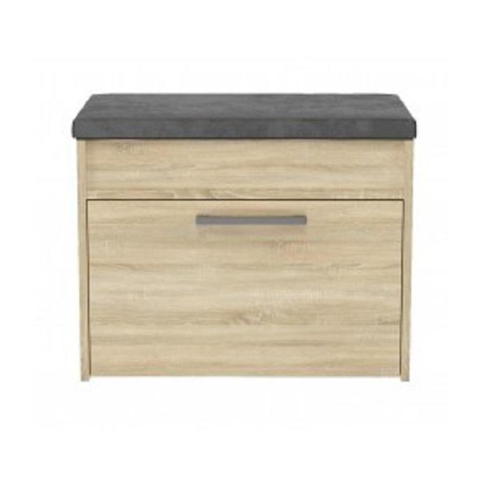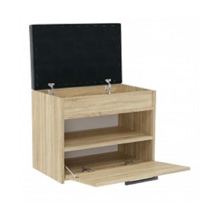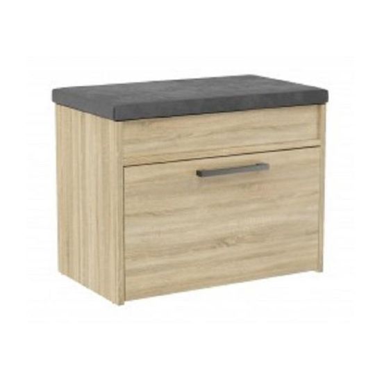 Szafka na buty Cella w kolorze dąb sonoma to bardzo praktyczny mebel do każdego przedpokoju. Szafka na buty składa się ze schowka o wymiarach 32x56x8 cm i tapicerowanym siedziskiem. Materiał wykonania to płyta laminowana, a obrzeża – wykończone tworzywem ABS. Mebel do samodzielnego montażu.