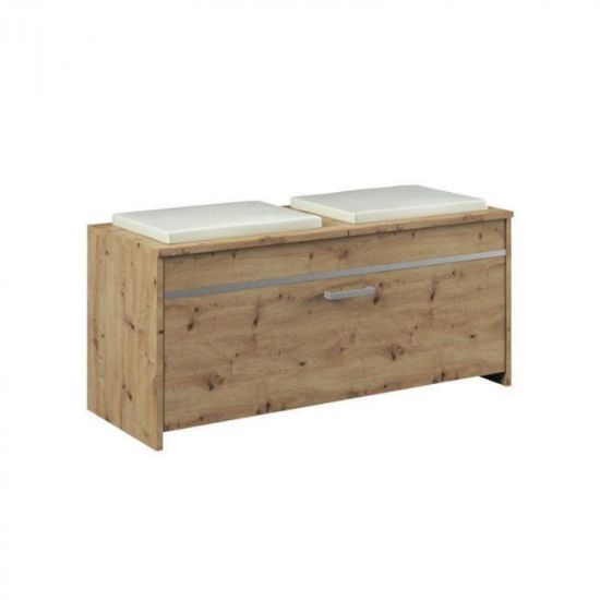 Szafka na buty Davos to bardzo praktyczny mebel do każdego przedpokoju. Szafka na buty składa się ze schowka i wygodnego siedziska. Wszystko to zamknięto w wymiarach 100x38x46 cm. Na uwagę zasługuje fakt, że szafka na buty Davos wykonany została z płyty laminowanej o grubości 18 mm co zapewnia jej wyjątkową wytrzymałość oraz solidność. Szafka na buty w kolorze dąb aristan.