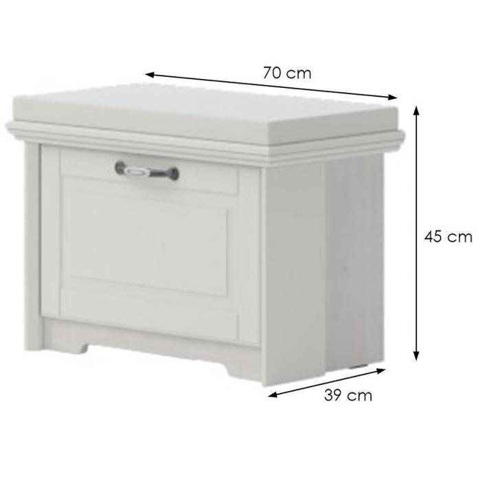 Szafka na buty Evergreen w kolorze ivory/polar pine mat to bardzo praktyczny mebel do każdego przedpokoju. Szafka na buty posiada jedną szafkę na obuwie oraz siedzisko. Materiał wykonania to płyta MDF/płyta wiórowa laminowana. Mebel do samodzielnego montażu.