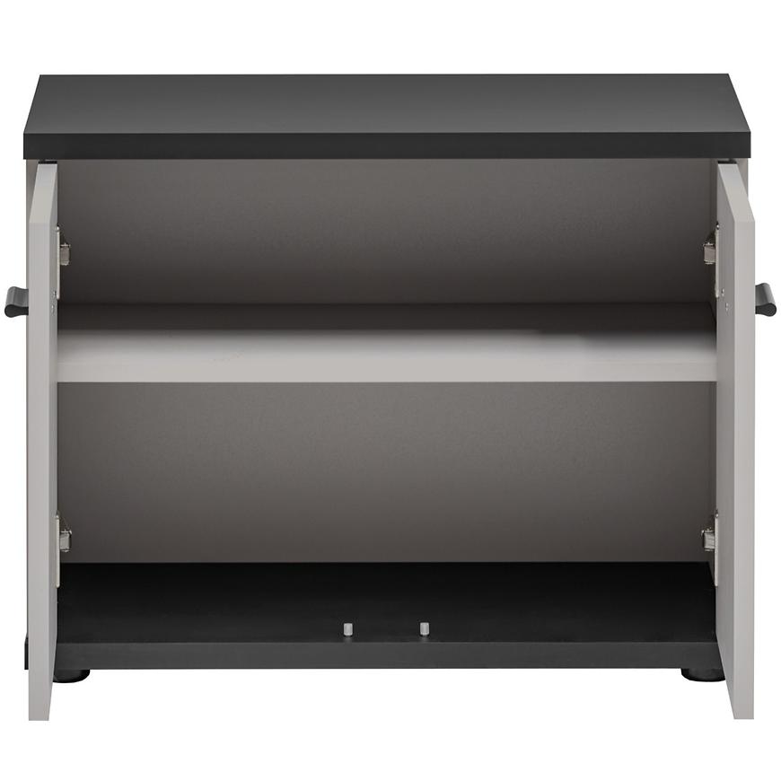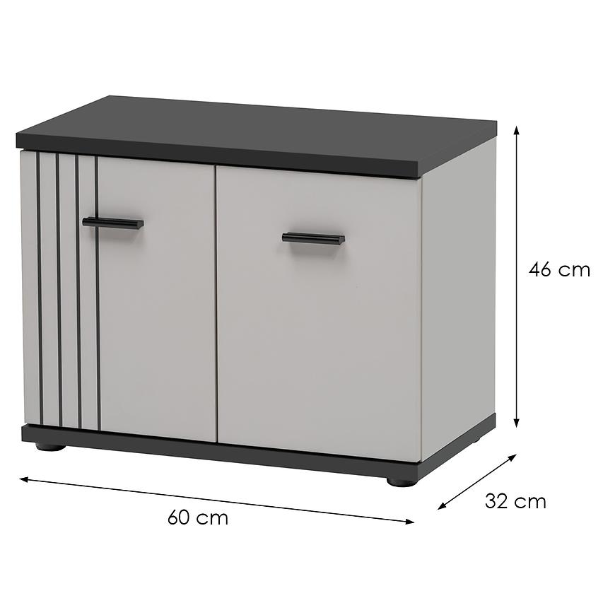Szafka na buty Hugo CC HG F w nowoczesnym wykończeniu Kaszmir / Czarny to funkcjonalny mebel do przedpokoju, który łączy praktyczne rozwiązania z eleganckim designem. Stonowana, matowa kolorystyka w odcieniu kaszmiru zestawiona z kontrastującym czarnym akcentem wprowadza do wnętrza wyrafinowany, minimalistyczny charakter. Mebel został wyposażony w uchylne fronty z przegródkami, które pozwalają na wygodne i uporządkowane przechowywanie obuwia – zarówno codziennego, jak i sezonowego. Kompaktowa forma sprawia, że szafka zmieści się nawet w niewielkim przedpokoju, nie zabierając cennej przestrzeni. Solidna konstrukcja i trwałe materiały zapewniają długotrwałe użytkowanie. Model Hugo CC HG F to idealne połączenie estetyki i praktyczności do nowoczesnych wnętrz.