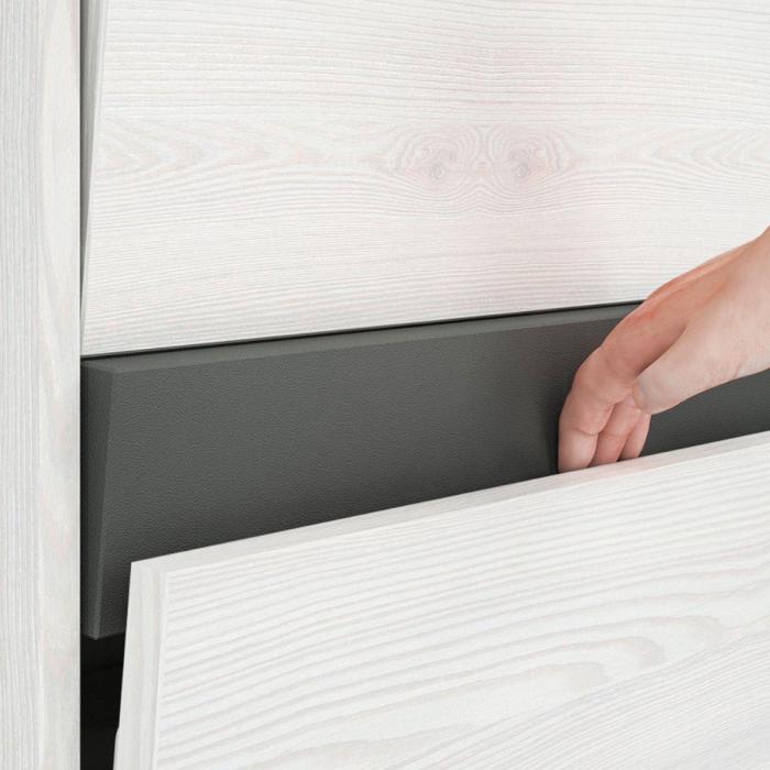 Meble z kolekcji Hyga są wykonane z płyty wiórowej laminowanej, co sprawia, że są odporne na uszkodzenia i łatwe w utrzymaniu czystości. Ich dekor sosna śnieżna nadaje im naturalnego uroku, a elementy w kolorze antracyt dodają kolekcji nowoczesnego akcentu. To połączenie sprawia, że meble Hyga doskonale wpisują się zarówno w nowoczesne, jak i klasyczne wnętrza.