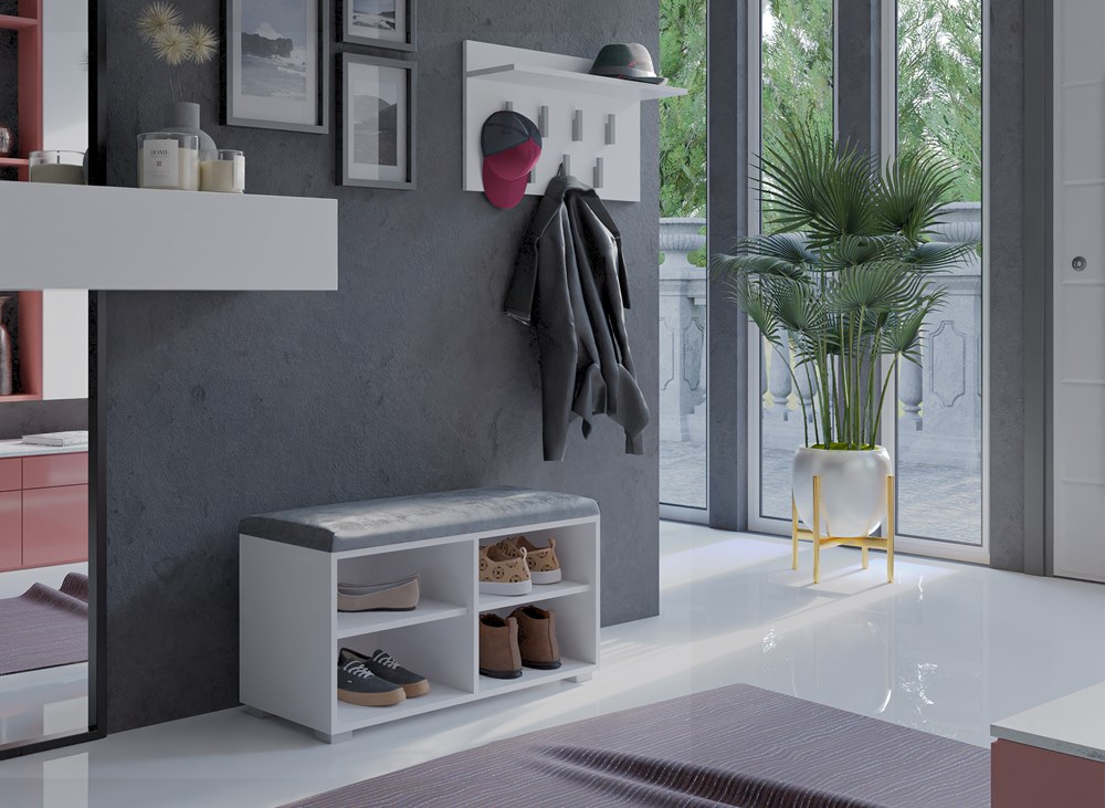 Szafka na buty Opi w kolorze białym to bardzo praktyczny mebel do każdego przedpokoju. Szafka na buty posiada siedzisko oraz cztery otwarte półki na obuwie. Materiał wykonania to płyta laminowana, a obrzeża – wykończone tworzywem ABS. Mebel do samodzielnego montażu.