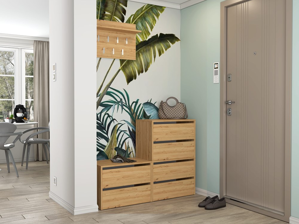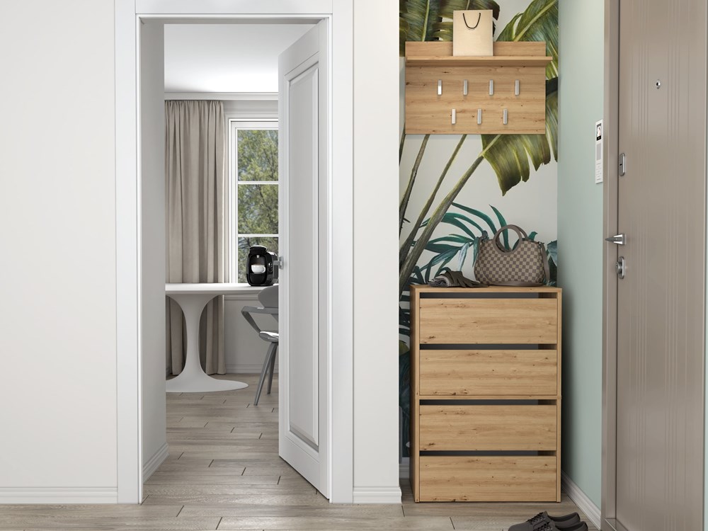 Ta elegancka szafka na buty łączy w sobie zarówno funkcjonalność, jak i styl, co sprawia, że jest doskonałym dodatkiem do Twojego wnętrza. Teraz możesz cieszyć się uporządkowanym i estetycznym miejscem do przechowywania swojego obuwia, bez kompromisów w kwestii wyglądu.