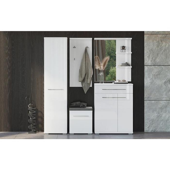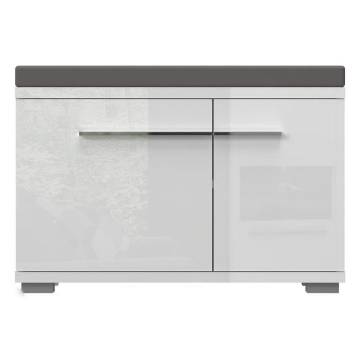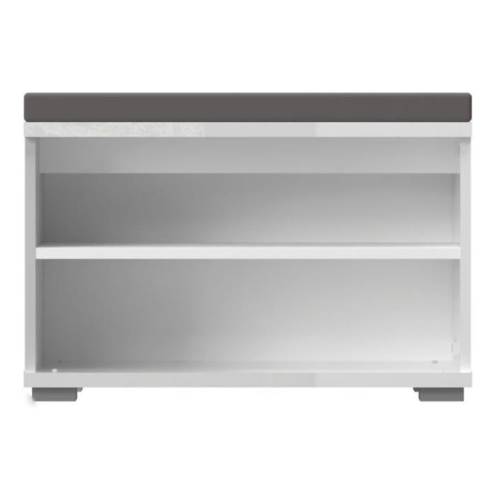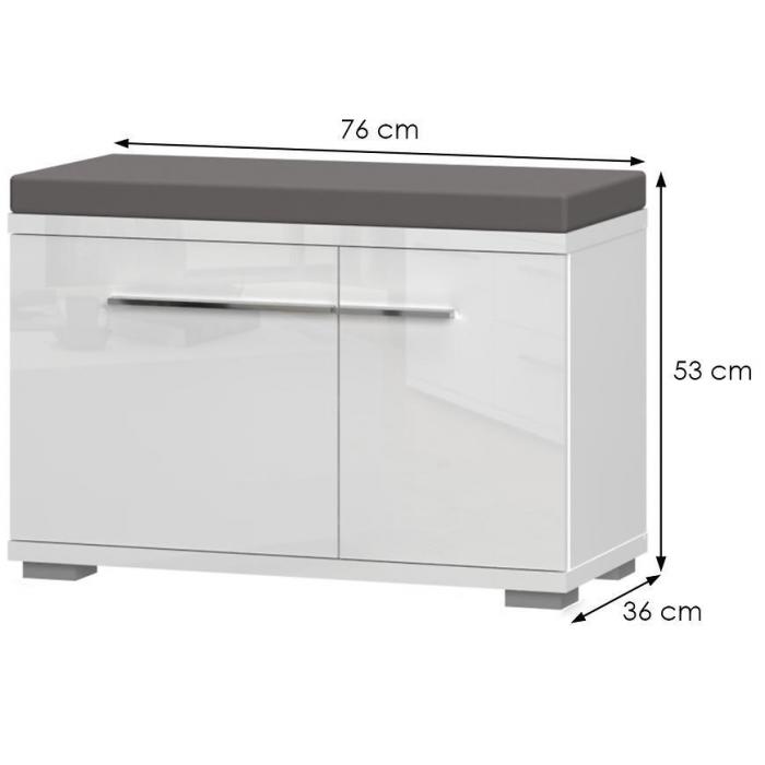 Szafka na buty Piano w kolorze białym połysk to bardzo praktyczny mebel do każdego przedpokoju. Szafka na buty posiada półki na obuwie oraz siedzisko. Materiał wykonania to płyta wiórowa. Mebel do samodzielnego montażu.