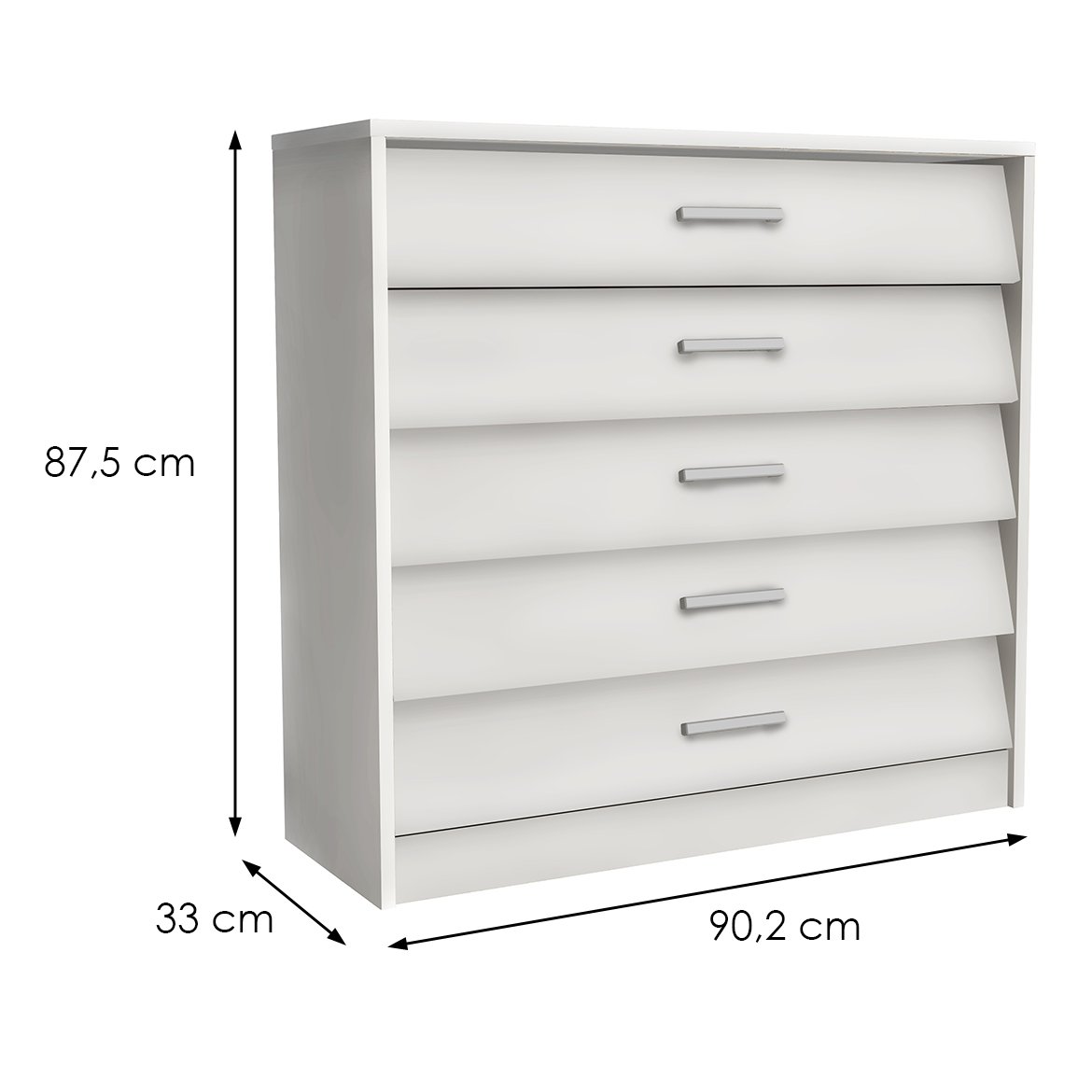 Dzięki przemyślanej konstrukcji o wymiarach 87,5 cm wysokości, 90,2 cm szerokości i 33 cm głębokości, szafka na buty Sawa świetnie sprawdzi się nawet w mniejszych pomieszczeniach. Pomieści kilka par obuwia, pomagając utrzymać porządek i zorganizować przestrzeń w funkcjonalny sposób. Kompaktowa forma sprawia, że mebel nie przytłacza wnętrza, a jednocześnie zapewnia wystarczającą ilość miejsca na przechowywanie butów.